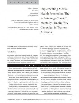 IMPLEMENTING HEALTH PROMOTION: THE ACT - BELONG - COMMIT MENTALLY HEALTHY CAMPAIGN IN WESTERN AUSTRALIA